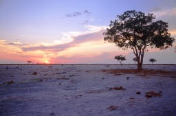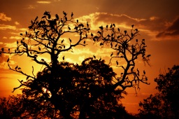 These Open-Billed Storks are almost certainly unaware of what a perfect picture they make against the setting Sun. Chobe Park had several large flocks of these birds, but none was more colorful than this one.