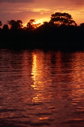 Not all of the Zambesi River is whitewater. Here, above Victoria Falls, is a serene vista hiding the Hippos and Elephants we had seen crossing the river just before sunset.